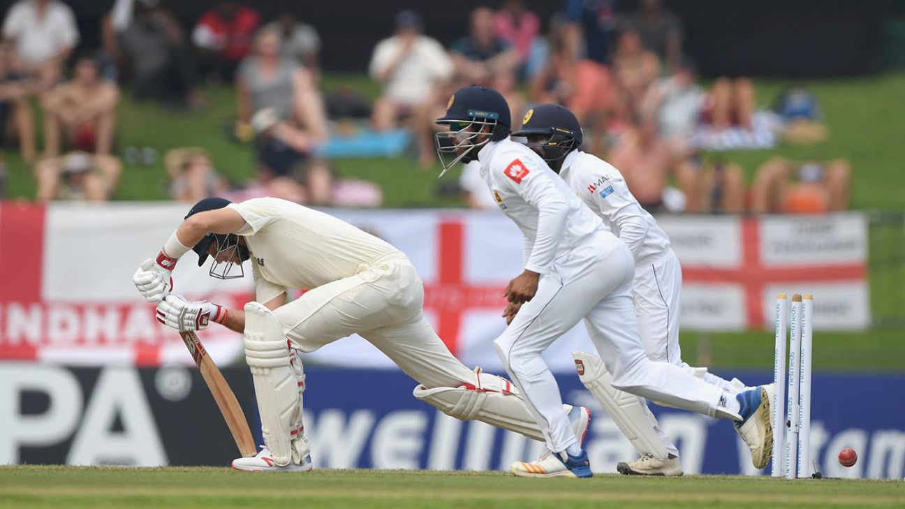 While Burns might be forgiven for wondering how he could play such a delivery, Root might be forgiving for wondering how he missed the one that bowled him. Lunging forward to the left-arm spin of Malinda Pushpakumara, Root left a gate so large you could reverse park a caravan in it and simply missed a straight one. It was the third time in the series he has been dismissed by left-arm spinners.