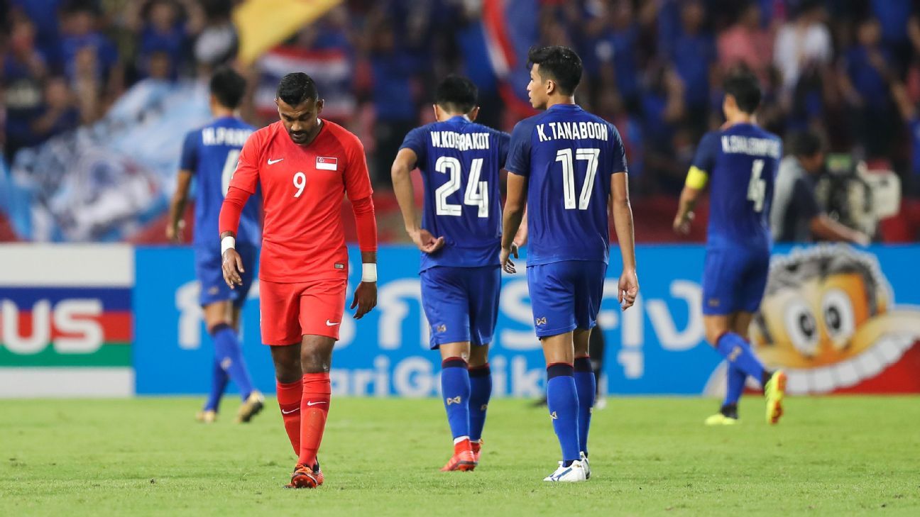 Singapore needed to win against the defending champions to force their way into the top two in Group B of the regional championship yet their three-goal defeat means Thailand finish top of the standings while the Philippines take second after a 0-0 draw with Indonesia.