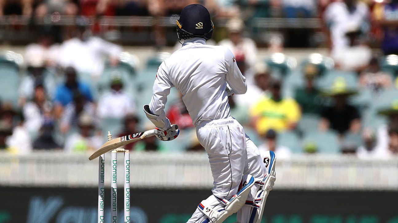 Dimuth, who was cleared to bat by doctors overnight, resumed his innings and walked straight into a bouncer barrage, but it would be a fuller, wider delivery that eventually got him. He scored the four runs he required to complete a half century, but was caught at gully attempting to flay the fiery Starc through the covers. Earlier in that same over, de Silva had attempted to hook a Starc bouncer, and ended up knocking off his own off bail, unable to control the swing of his bat.
