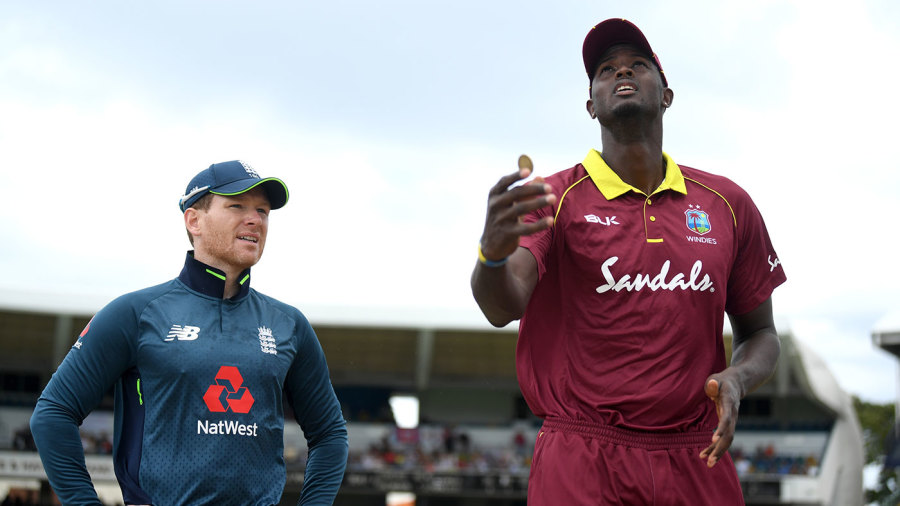 Teams: West Indies: 1 Chris Gayle, 2 John Campbell, 3 Shai Hope (wk), 4 Darren Bravo, 5 Shimron Hetmyer, 6 Jason Holder (capt) 7 Carlos Brathwaite, 8 Sheldon Cottrell, 9 Ashley Nurse, 10 Devendra Bishoo, 11 Oshane Thomas England: 1 Jason Roy, 2 Jonny Bairstow, 3 Joe Root, 4 Eoin Morgan (capt), 5 Ben Stokes, 6 Jos Buttler (wk), 7 Moeen Ali, 8 Tom Curran, 9 Liam Plunkett, 10 Adil Rashid, 11 Mark Wood