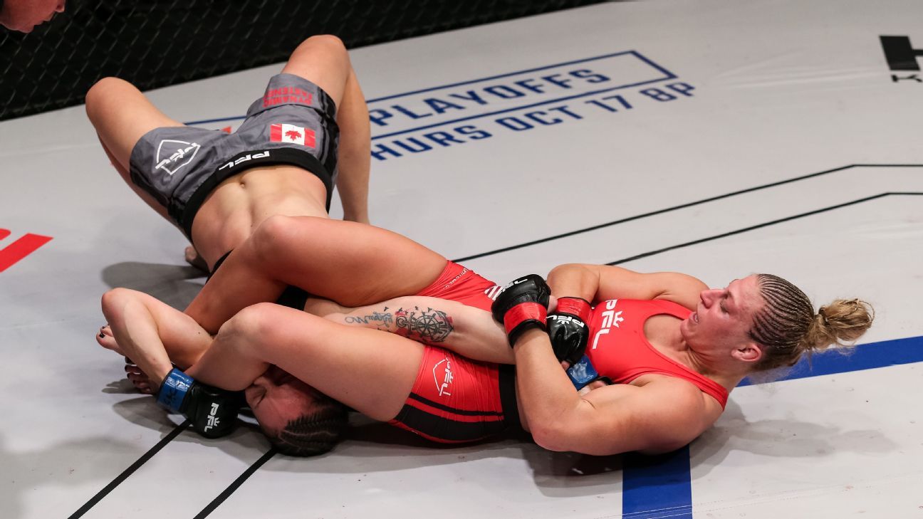 Pacheco, who cut weight to make the 155-pound lightweight limit, was bigger and stronger than Kaufman, who fought at 135 pounds for all of her 13-year career before opting into this $1 million chase in the PFL. It wasn’t simply size that got the job done for fourth-seeded Pacheco (12-3), though. She was the better striker from distance, and that showed on Kaufman’s face, which by Round 2 was as red as her PFL fighter kit.