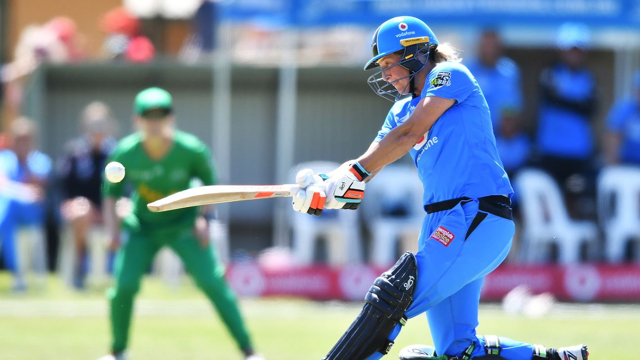 Sophie Devine continued her stunning all-round form to ensure Adelaide Strikers remain top of the WBBL table after thumping the struggling Melbourne Stars in Nuriootpa. Devine thumped her fourth consecutive half-century and her fifth of the tournament, making 77 not out from 58 balls as the Strikers posted 2 for 153. Devine struck five fours and three sixes in her innings and got great support from inform batter Bridget Patterson, who made 41 not out. The New Zealand allrounder then took 3 for 13 from three overs as the Stars failed to reach three figures in the chase. She took the key scalps of Lizelle Lee and Mignon du Preez in the powerplay. The Stars slumped to 3 for 20 when skipper Elyse Villani sliced Tahlia McGrath to cover and they never recovered.