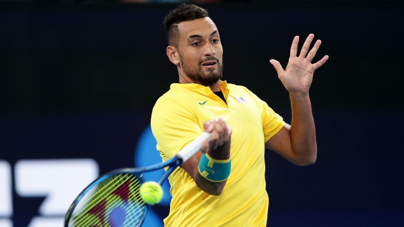 Revelling in the ATP Cup team environment, Nick Kyrgios has given Australia a flying start in their quarter-final against Great Britain in Sydney.