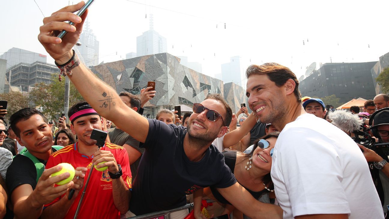 Nadal arrived to a raucous applause, signed a few giant tennis balls, posed for a selfie with a group of ball kids before taking part, alongside Tiley, in that stage-managed interview session hosted by former Aussie doubles legend Todd Woodbridge. There was no mention of smoke or air quality.