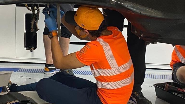 Norris helps McLaren mechanics dismantle his car