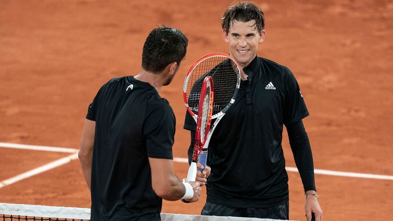 “Today in my match there was a mistake — in my favor actually,” two-time French Open runner-up Thiem said after beating Ruud 6-4, 6-3, 6-1. “Casper showed me the mark on his phone after the match.”