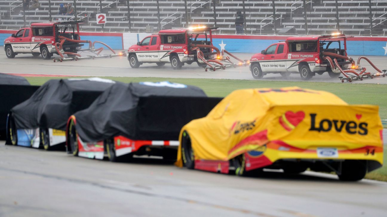 FORT WORTH, Texas — NASCAR’s Cup Series playoff race in Texas was postponed Sunday night after 52 laps on a misty day that slowly deteriorated to a drizzle, and it never actually rained before the event was called off.