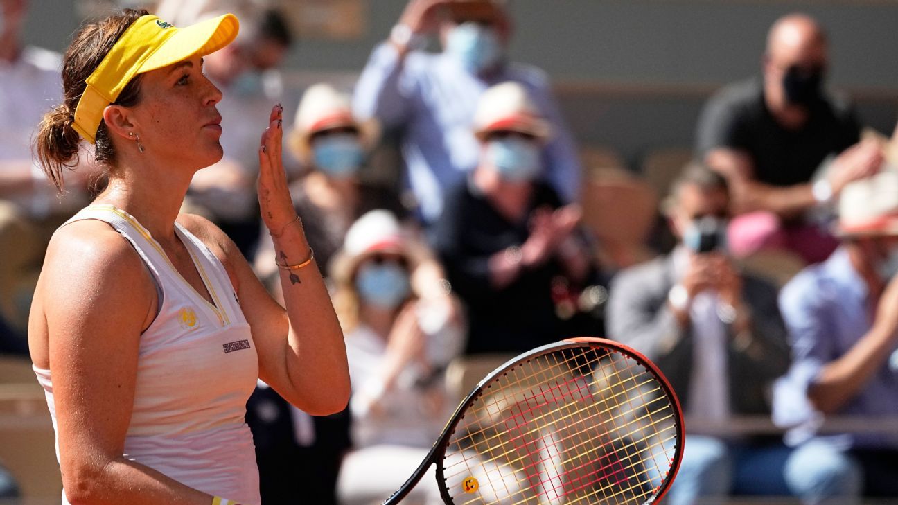PARIS — Tour veteran Anastasia Pavlyuchenkova of Russia advanced to her first Grand Slam final by beating unseeded Tamara Zidansek at the French Open on Thursday, 7-5, 6-3.