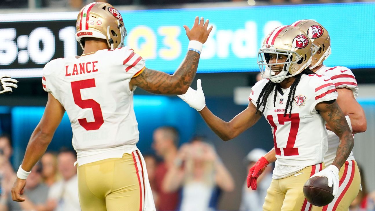 49ers quarterback Trey Lance got off to a rough start on Sunday, but the Niners had to be pleased with how the rookie rebounded. Lance began 1-of-6 for 9 yards with an interception, but he hit on seven of his final eight attempts for 93 yards with two touchdowns. Sure, much of that production came against the Chargers’ backups, but Lance also was doing his damage with backups on the offensive line and at (most) skill positions. Regardless, Lance proved that some early adversity won’t be too much for him and he can adapt and improve on the fly. Whether his performance was enough to apply more pressure on starter Jimmy Garoppolo remains to be seen, but the ability to bounce back should serve him well no matter when his turn finally comes. — Nick Wagoner