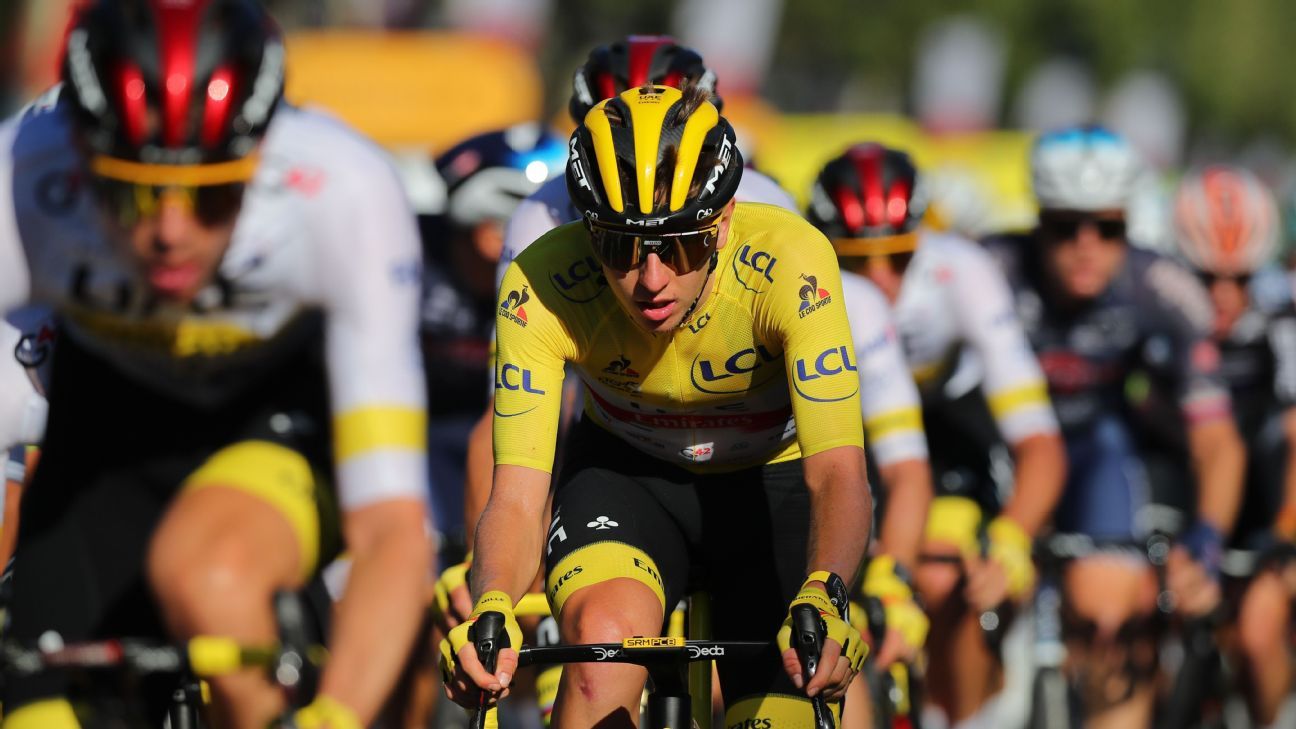 The UAE Team Emirates leader successfully defended his huge lead of 5 minutes, 20 seconds over second-place Jonas Vingegaard in the mostly ceremonial final stage to the Champs-Elysees on Sunday. Richard Carapaz finished third overall, 7:03 off the pace.