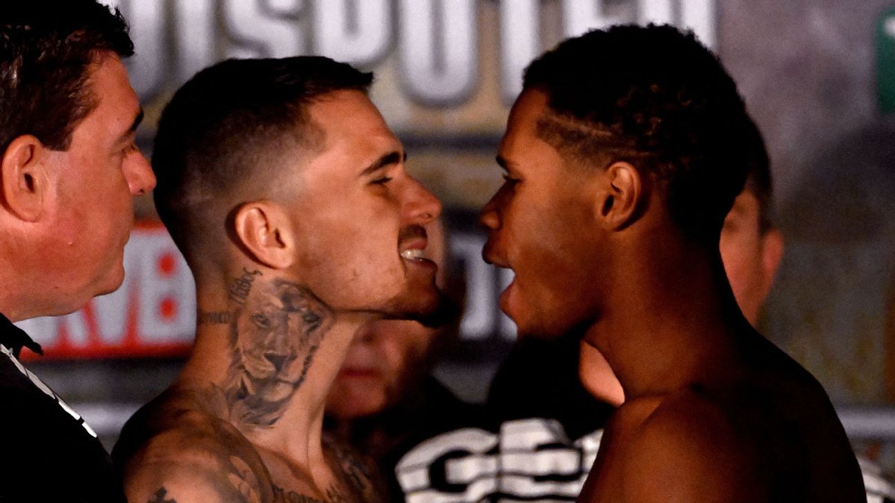 George Kambosos Jr. puts his WBO, WBA, IBF and WBC “franchise” lightweight titles on the line against WBC champion Devin Haney on Saturday, in the main event of a Top Rank card at Marvel Stadium in Melbourne, Australia (9 p.m. ET on ESPN/ESPN+ with prelims at 7:30 on ESPN+).