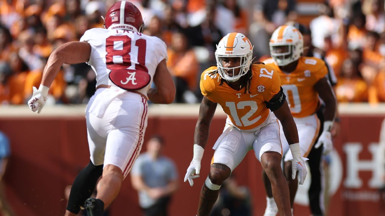 Tennessee receiver Jalin Hyatt was borderline unguardable, reeling in two first-half touchdowns from Hendon Hooker, who was picture-perfect to start the game. Hooker completed 12 of 16 passes for 166 yards, two touchdowns and no interceptions. He joined Trevor Lawrence and Joe Burrow as the only quarterbacks since 2015 to score 28 or more first-half points against Alabama.