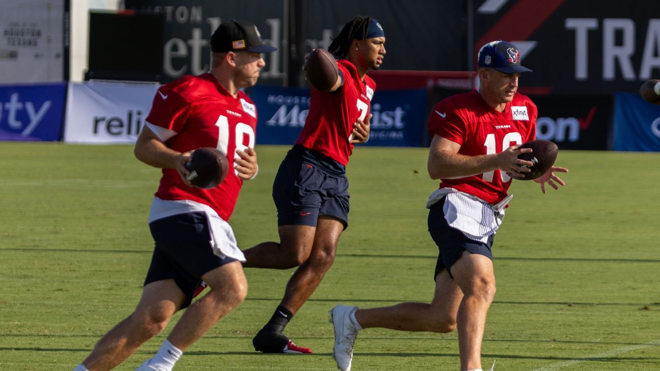 Mills and Stroud have yet to separate in the battle through the first five practices. Mills has thrown two interceptions during team periods, while Stroud has had rookie moments of indecisiveness, which leads to him holding the ball too long and also throwing interceptions of his own — including a pick-six Monday by last year’s top pick, Derek Stingley Jr. But both have had junctures where they’ve pushed the ball down the field for big plays.